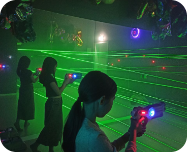 Im Laser-Labyrinth steht alles Kopf — im wahrsten Sinne! Ziel ist es, den Weg durch einen Raum voller Laserstrahlen so schnell wie möglich zu meistern, ohne sie zu berühren — kriechend, springend, kletternd. Aber das schafft man nicht allein: Nur im Team kommt man erfolgreich ans Ziel.