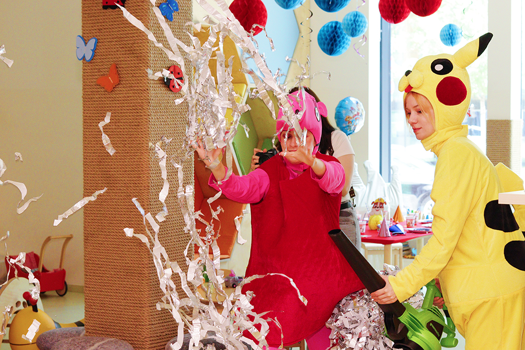 Egal ob im eigenen Wohnzimmer, im Café oder im Park — wir kommen zu Ihnen und machen jede Feier unvergesslich. Unser vielfaltiges Programm für Kinderunterhaltung umfaßt: Thematische Spiele, eine Papier-Disco, eine Seifenblasenshow, eine magische Show, eine chemische Show, Kinderschminken, Ballonmodellieren, Workshops, Kinderquests und vieles mehr.