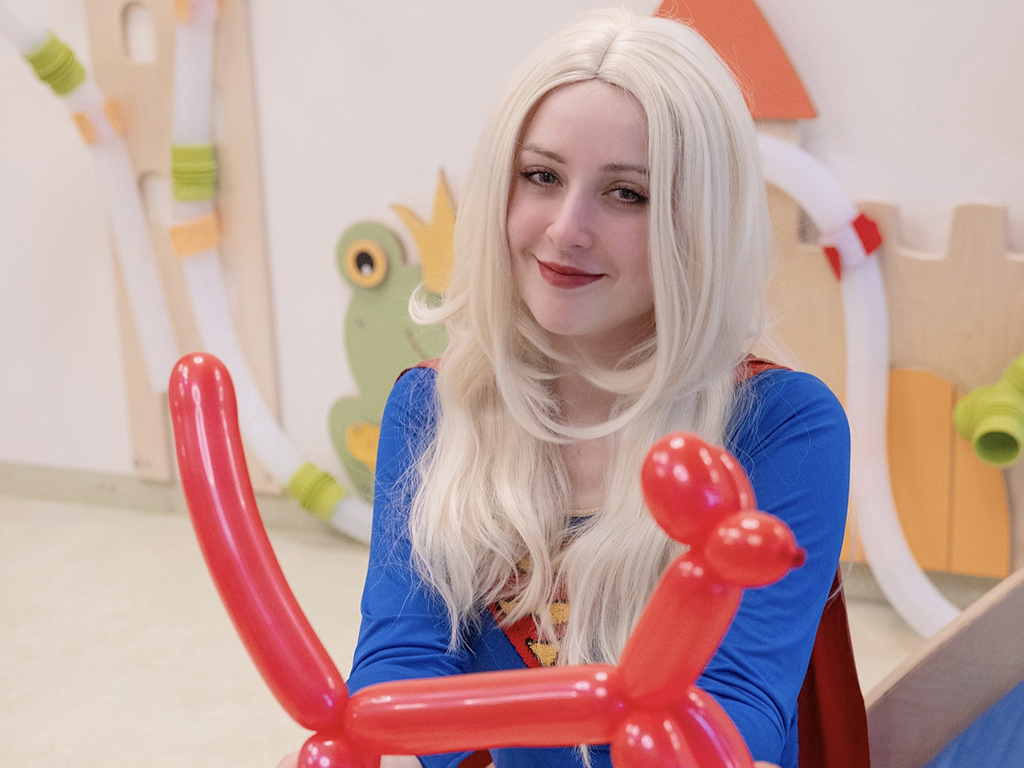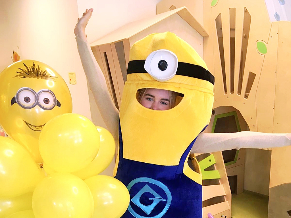mit Animateur*in in Kostüm